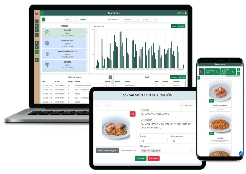 Dissenyat per disposar d'un innovador servei de cantina automàtica a col·lectivitats (empreses, universitats, co-workings, hospitals...) oa qualsevol ubicació disponible les 24h del dia.Amb una capacitat de fins a 100 productes refrigerats en menys de 1 m2 gràcies al disseny patentat Opti-Stack.